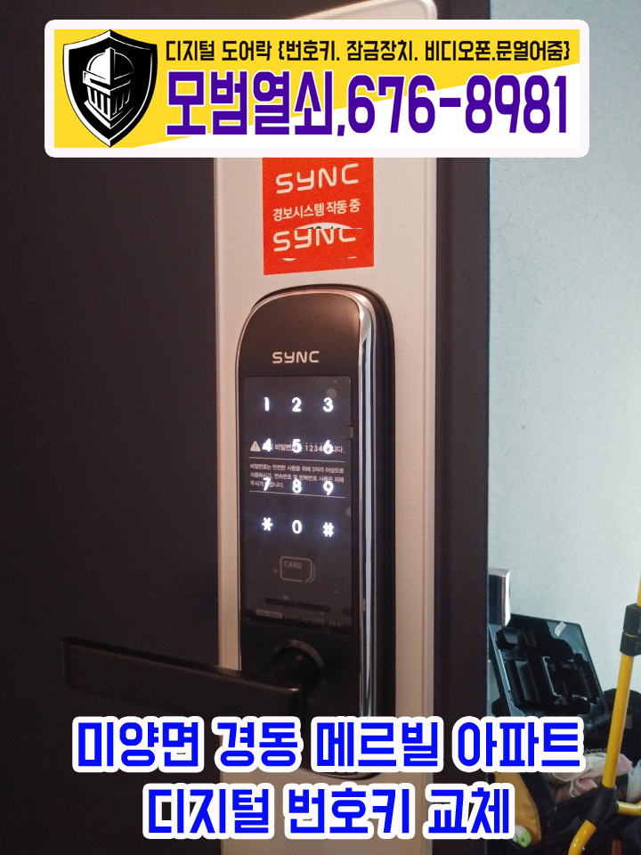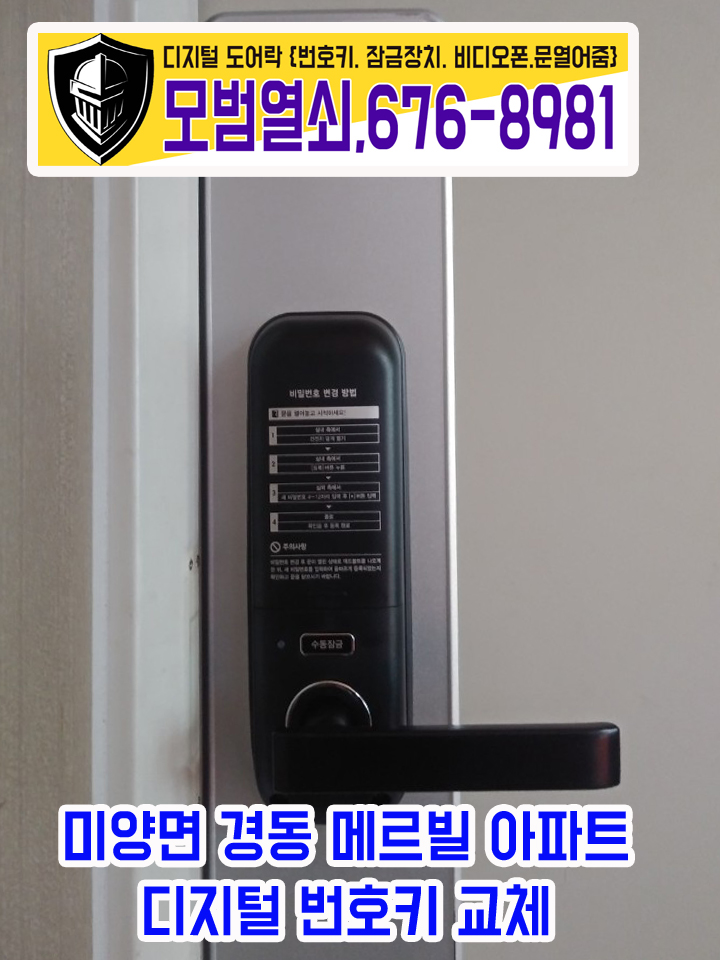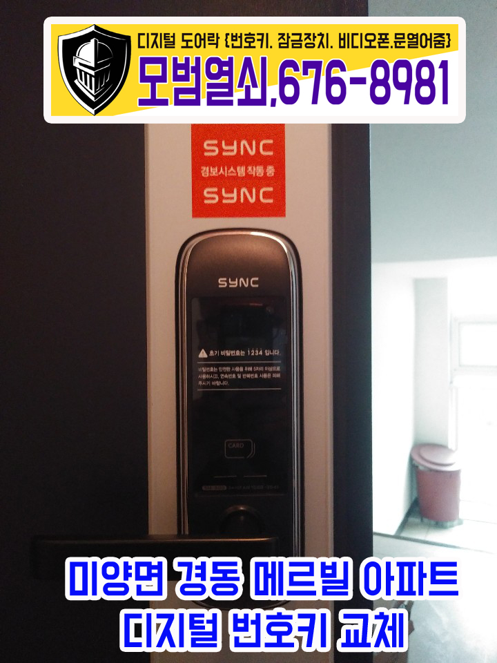 문제없는 지확인후 미양면 메르빌아파트에서 번호키설치를 마칩니다.